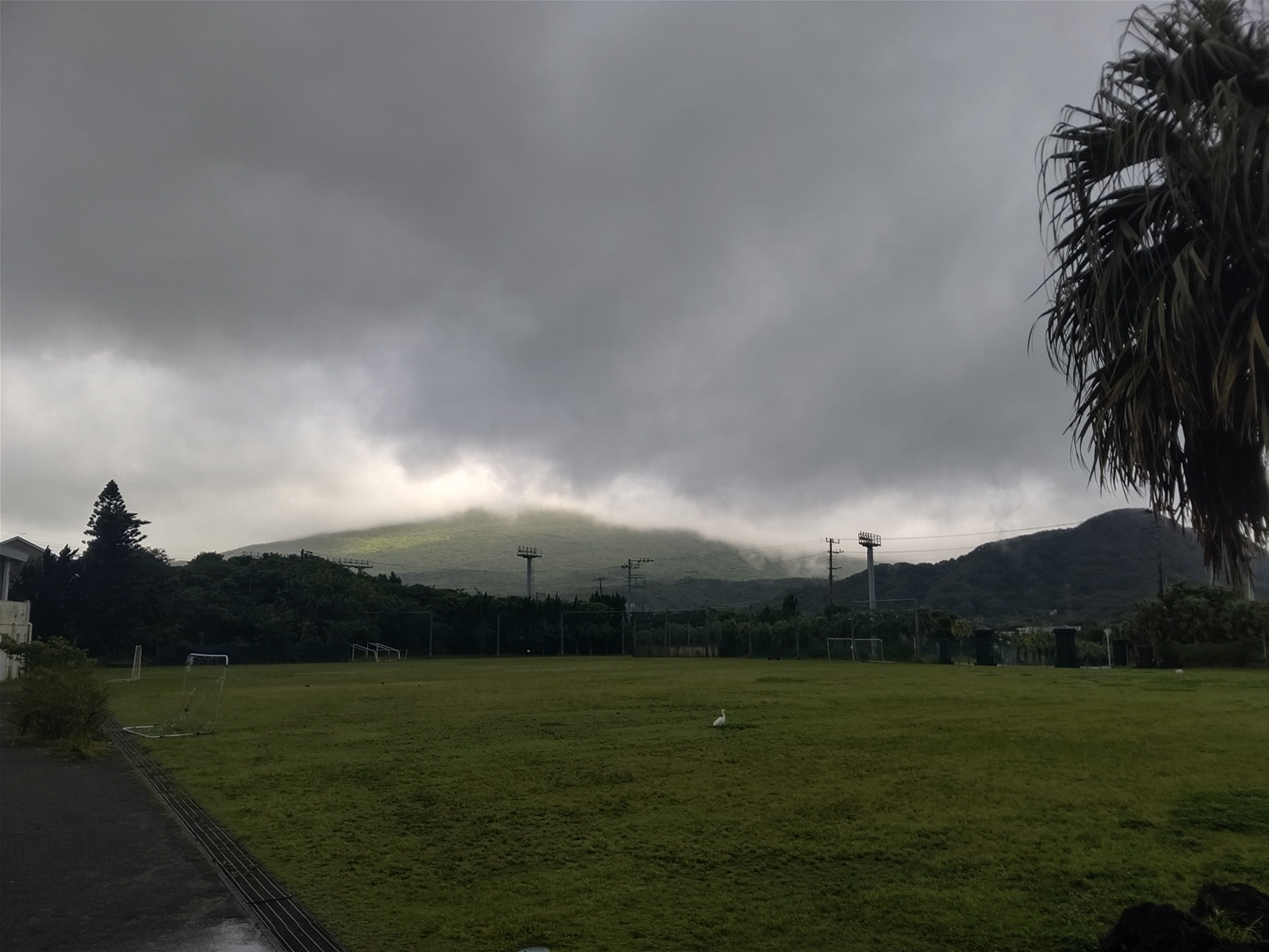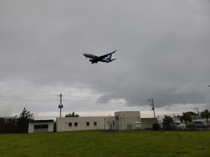 西風が吹くと、着陸のために、校庭の上を