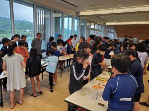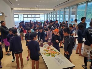 学校日記99(5年木島平小と海の交流)5年生2023.07.21昨日より長野県木島平村立木島平小学校の5年生が八丈島に来島しています。今日の午後は、八丈島・青ヶ島の小学校の5年生が、底土海水浴場で交流しました。手作りの名刺交換とおやつタイムの後、海に入りました。泳いだ後、海浜清掃をしてお別れしました。2月には、八丈島・青ヶ島の5年生が、木島平村の雪山に行かせていただきます。今日の繋がりを大切にしたいと思います。
