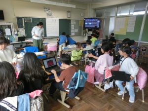 爽やかな秋晴れです。うろこ雲が空いっぱい広がっていました。昨日に続き「デジタルシティズンシップ学習」を行いました。1年生は「自分のパソコンと上手につきあうには?」、2年生は「デジタルの手がかり」、3年生は「ネットでのやりとり、どうすれば相手にうまく伝わる?」、ひまわり学級は「iPadを味方にしよう」をテーマに学びました。デジタルネイティブ世代の子供たち。メディアと上手につきあいながら、効果的な学びができるようにこれからも工夫していきます。