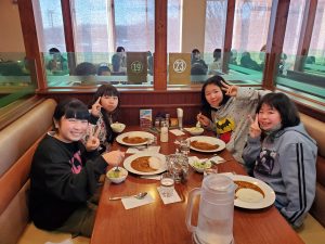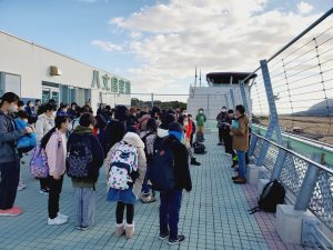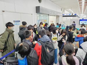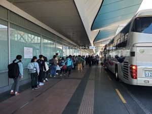 学校日記213(5年 雪山体験教室①)5年生2024.02.13 八丈町立小学校3校と青ヶ島小学校の5年生、欠席する子もなく、予定通り八丈島空港を出発しました。今日から3泊4日で、長野県木島平村へ雪山体験教室へ行ってきます。羽田空港から、2台のバスに乗り換えました。途中、高坂サービスエリアで、昼食をとりました。バス酔いする子もなく、「お腹すいた~」と、全員完食。みんな元気です。バス内ではレク係によるバスレクを楽しんでいます。