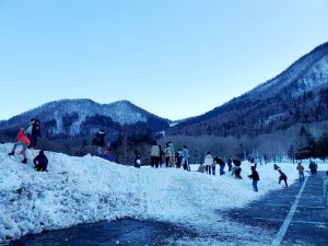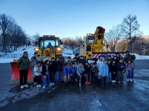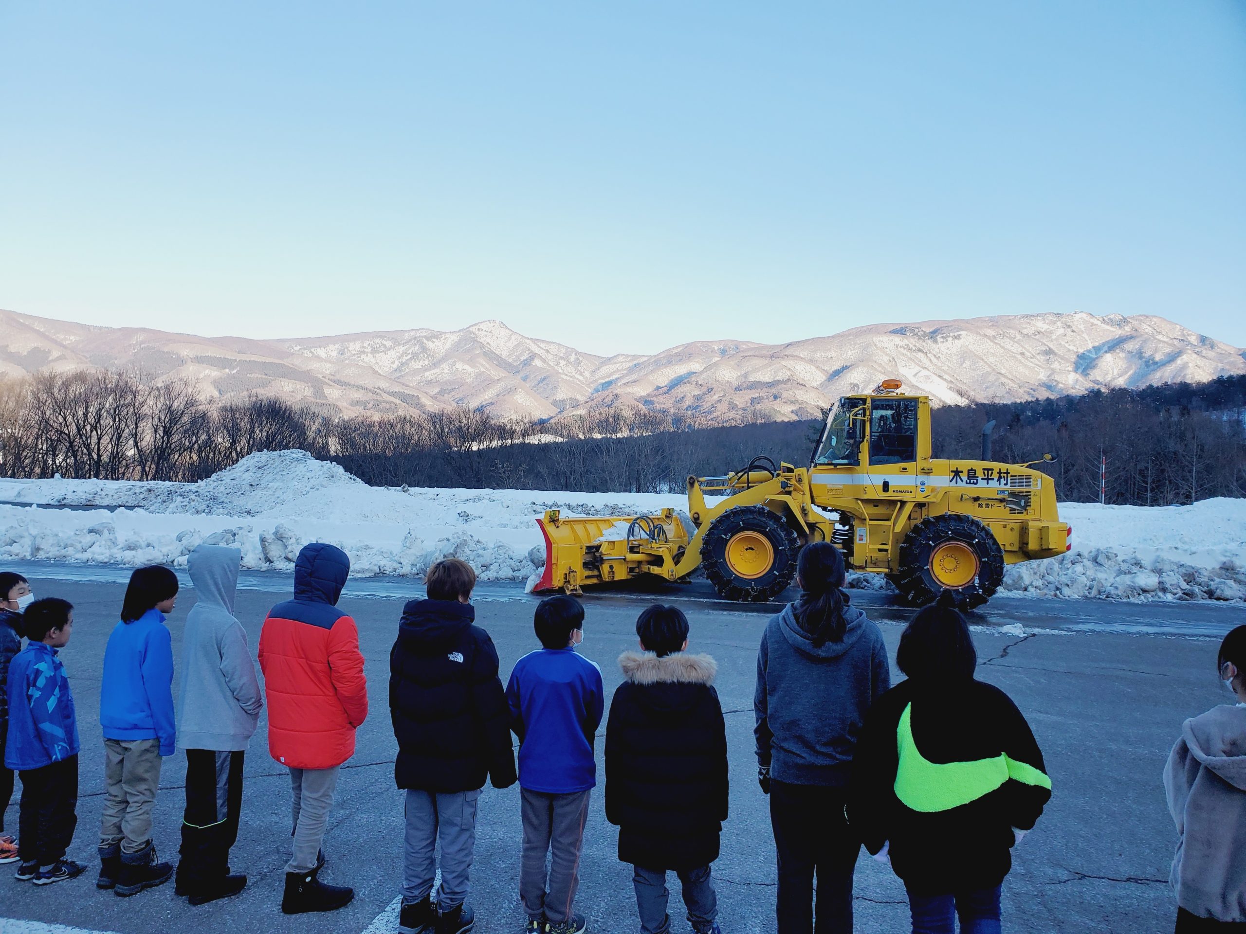 学校日記214(5年 雪山体験教室②)5年生2024.02.13 _empty_empty_empty除雪車見学をしました。その後、除雪された雪で遊び、大興奮の5年生でした。入村式を済ませ、入浴やレンタル品の確認をしました。5分前行動が、できている子もいて、素晴らしいスタートです。
