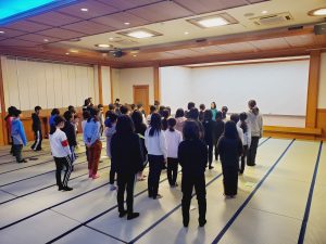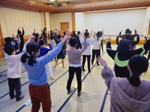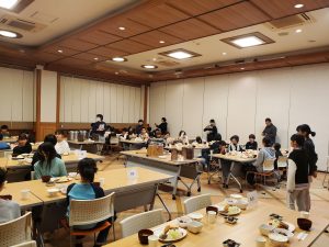 学校日記215(5年 雪山体験教室④)5年生2024.02.14 雪山体験教室2日目の朝を向かえました。昨晩の夕食の様子と今朝の朝会の様子、朝食準備の食事係の様子、朝食メニューをお知らせします。いよいよ今日からスキー教室です。「しっかり食べて、元気に過ごしましょう」と食事係の挨拶がありました。全員元気に過ごしています。