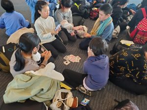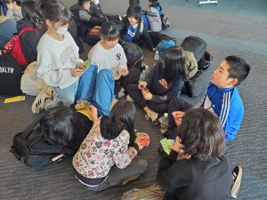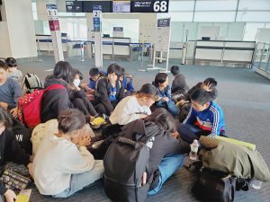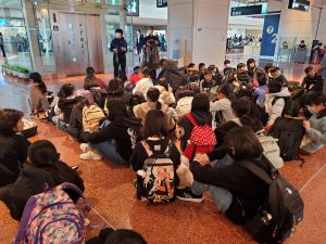 学校日記224(5年 雪山体験教室⑬)5年生2024.02.16 2月13日から3泊4日の5年生雪山体験教室も後は、飛行機で八丈島へ戻るのみとなりました。羽田空港に到着し、4日間お世話になった看護師さんに感謝の言葉を伝え、お別れしました。搭乗口の前で搭乗を待っています。