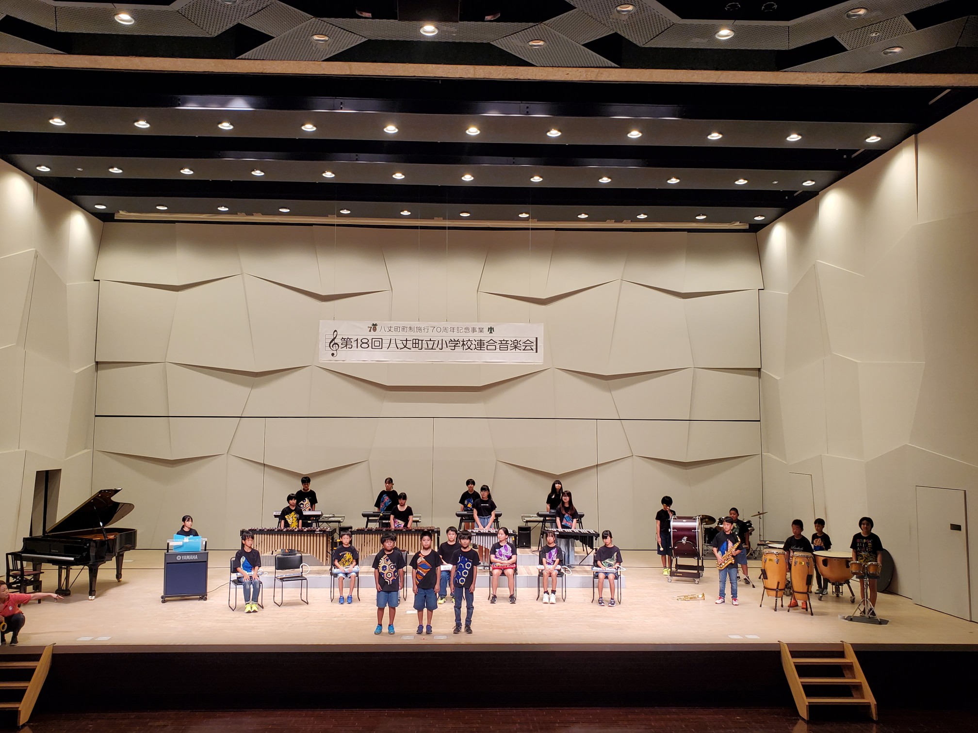 学校日記96(5年 連合音楽会リハーサル)5年生2024.09.19 5年生は、明日の連合音楽会に向け、リハーサルのため「八丈町多目的ホール『おじゃれ』」に行きました。座席の確認、ステージへの出入りの練習、ステージ上の位置の確認をし、いよいよリハーサル。ホール中に響く、合奏の音と歌声には、これまで自分たちで創り上げてきたという自信を感じると共に、曲にのせたメッセージがしっかり表現されていました。明日は本番です。子供たちのエネルギッシュな演奏をどうぞお聴きください。明日は、来年度出演する4年生も鑑賞に行きます。大賀郷小学校、三原小学校の演奏も楽しみです。