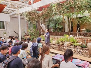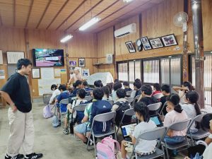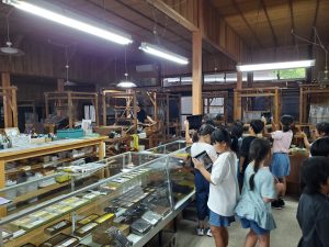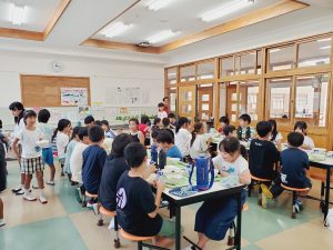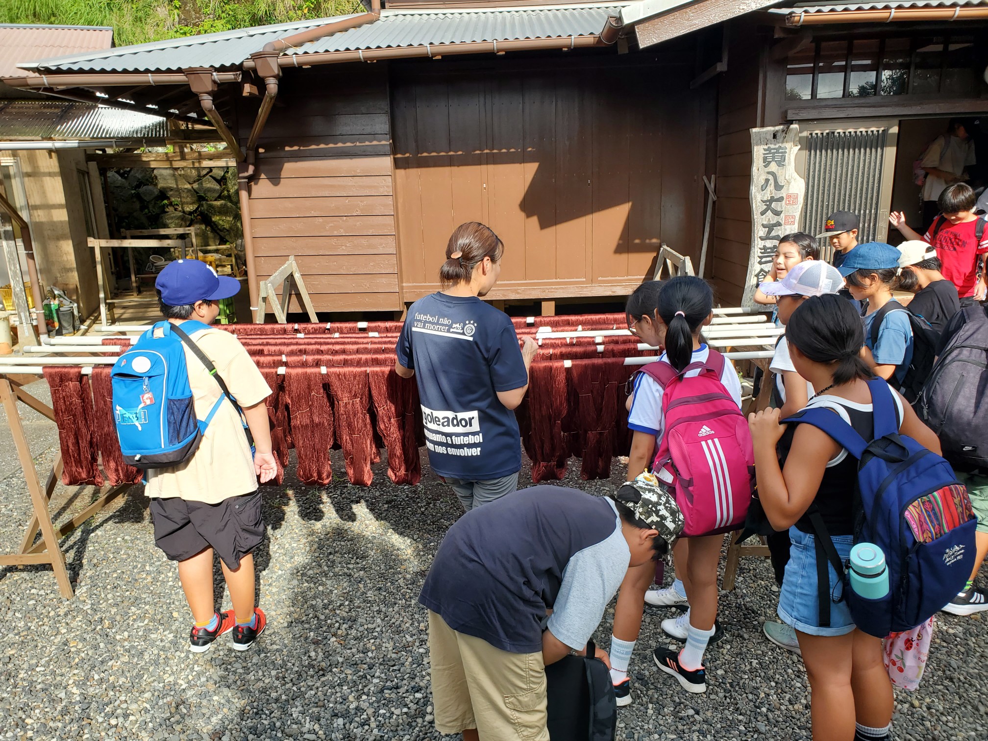 晴れていても雨が降る八丈島らしい天候でしたが、4年生は今日一日、校外学習を行いました。総合的な学習の時間で、八丈島で残していきたいものとして、「樫立踊り」「八丈太鼓」「黄八丈」を選んだ子供たちが、バスの時刻を調べたり、訪れたい場所を決めたりと自分たちでプロデュースをしました。そして今日、「服部屋敷」と「黄八丈めゆ工房」を訪れることになりました。お昼は、三原小学校にご協力いただき、4年生との交流給食をさせていただきました。給食センターの皆様にもご協力いただきました。多くの皆様にご協力いただいて実現した校外学習。ご協力いただきました皆様に心より感謝申し上げます。直接見せていただいたり、聞いたりする貴重な経験で、多くのことを学ぶことができた4年生の満足そうな表情がすてきでした。