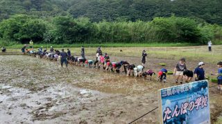 5年生学校日記29(5年 田植え) 八丈町立小学校3校の5年生合同の田植えを行いました。コロナ禍が明けて、昨年度から交流班での活動を復活させることができ、今日も班で自己紹介をしてから活動を始めました。田んぼに入ってしばらくは「足が上がらない!」「歩けない!」……...2024.05.225年生三根小だより