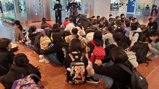 5年生学校日記224(5年 雪山体験教室⑬) 2月13日から3泊4日の5年生雪山体験教室も後は、飛行機で八丈島へ戻るのみとなりました。羽田空港に到着し、4日間お世話になった看護師さんに感謝の言葉を伝え、お別れしました。搭乗口の前で搭乗を待っています。2024.02.165年生三根小だより