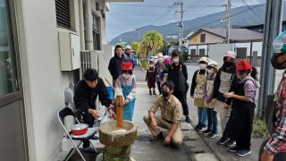 5年生学校日記195(5年 学年レク餅つき大会) 5年生は、学年レクとして、田植えをし、育て、収穫したもち米を使って、餅つきをしました。今年は、三根公民館をお借りして行いました。学年学級委員さんを中心に、多くの保護者の皆様にご協力いただきました。また、毎年お世話になっている大...2024.01.205年生三根小だより