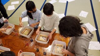 5年生学校日記219(5年 雪山体験教室⑧) スキー教室の後の時間に、紙すき体験をしました。木島平村に古くから伝わる内山紙、やり方を教わり、いざ体験! すいたこうぞ液の上に思い思いの模様を付けて、掃除機で吸って半乾きにして出来上がりです。世界に一つだけのハガキが完成し...2024.02.145年生三根小だより