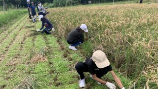 5年生学校日記130(5年稲刈り) 5年生は、5月に田植えをし、7月に草取りと肥料を撒き、いよいよ今日、育ったお米を収穫(稲刈り)しました。お米をたわわに付けて、大きく育った稲の姿に驚く子供たち。かまの使い方を教えていただき、安全に稲刈りを楽しみました。脱穀の様子...2023.10.055年生三根小だより