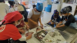 5年生学校日記147(5年お魚教室) 3・4校時に5年生は「お魚教室」で、八丈島漁協女性部の皆様に教えていただきながら、一人1尾ムロアジをさばきました。初めて体験する子も上手に包丁を使いながら、真剣に取り組んでいました。さばいた魚は、すぐ塩焼きにして、食べました。...2023.10.275年生三根小だより