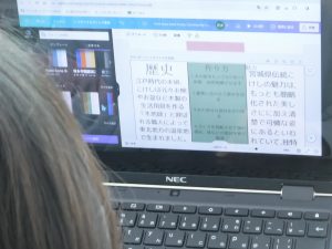 今日は、タブレットを使って日本の伝統文化を紹介する取組を行っていた4年生の授業を見てきました。難しい漢字が出てきて読み方が分からなかったり、長文を解読することに苦慮していました。それを自分なりの紹介文にしなければなりません。相手に読んでもらえる紹介文にすることがポイントです。日本・八丈島の伝統文化を知ること・紹介すること、長文読解、漢字の読み、写真・文章の構成など複数の教科の要素が絡み合った総合の学習です。