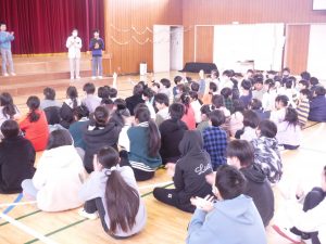 クイズ大会全学年2024.02.29児童会主催のクイズ大会が、中休みを使って行われました。幕と幕の間を物体が高速で移動したものを「何か」当てるクイズでした。「わかった~」「えっ~」「もう一回」と盛り上がっていました。みんなで楽しむ休み時間も、たまにいいですね。役員の皆さんありがとう。