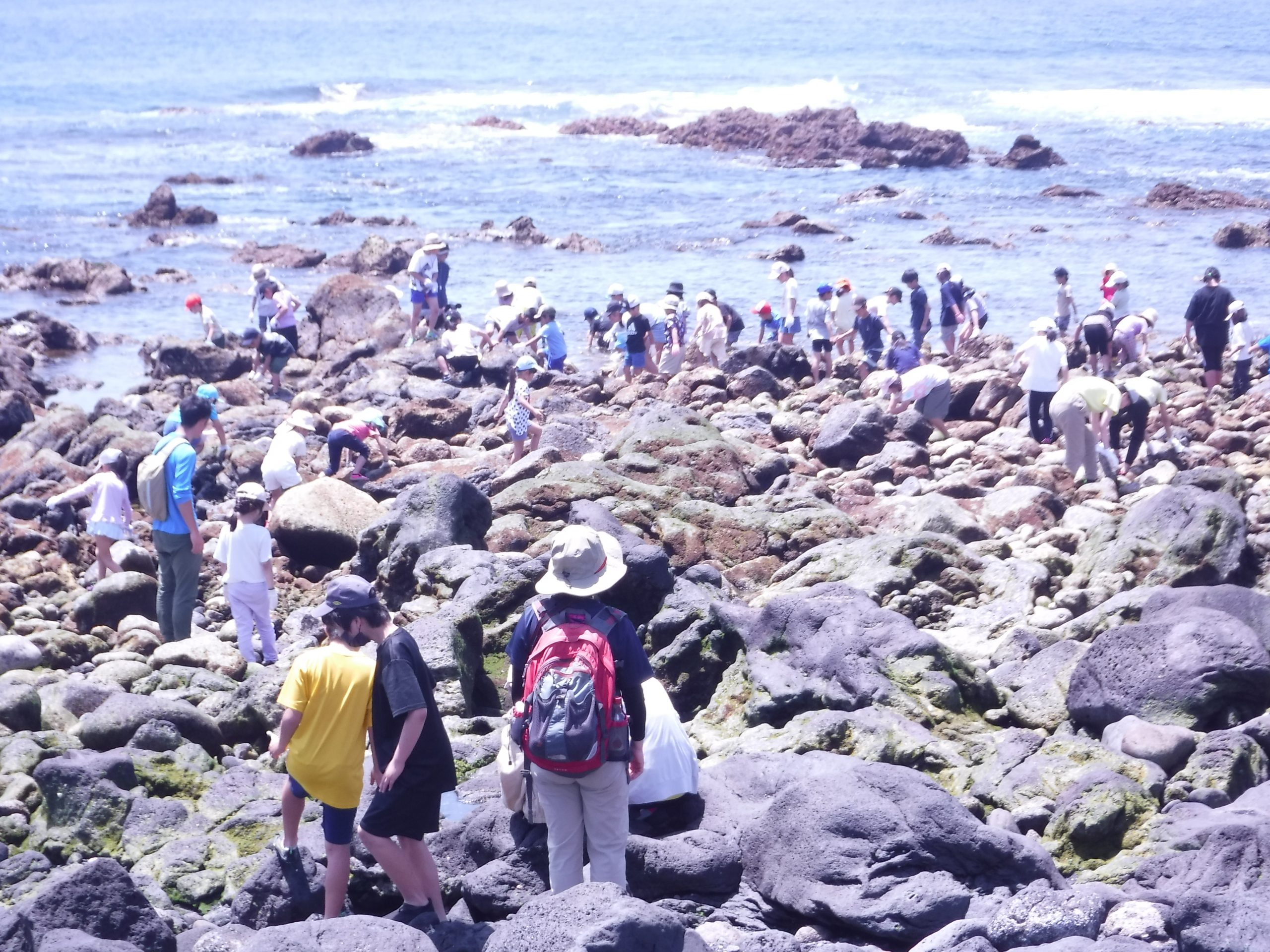 快晴の天気に恵まれ、全校遠足が行われました。あまりの天気の良さに、少し熱中症の症状がでた児童がおりましたが、無事に終了しました。全員参加でできたことも本当に良かったです。この天気で磯遊びが盛り上がりました。びしょ濡れになっている児童もいました。たくさんの海の生物を観察した児童もいました。最高の天気と最高のロケーションのなか、お弁当の時間の児童の笑顔が印象的でした。最高の一日でした。