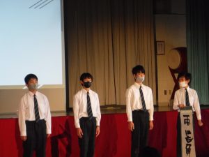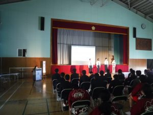 本日は、明日の学習発表会に向けてのリハーサル(舞台・展示)が行われました。全校生徒がそろって鑑賞しました。明日は、保護者を対象に本番が行われます。明日の学習発表会では、生徒は出番の前まで教室で待機し、演じた後はまた教室に戻ります。 体育館の密を防ぐための措置をとります。また、リモートで各家庭に映像を送信します。
