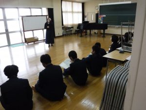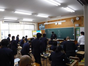 今日5校時は、八丈町教育研究会です。他校の先生方が授業観察に来ています。少し緊張した面持ちですが、いつも通り集中して授業に参加しています。