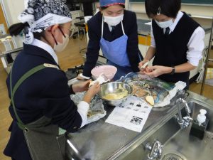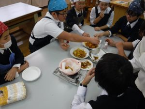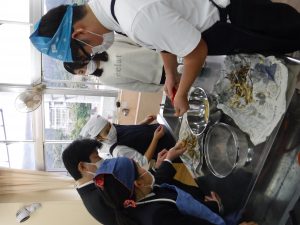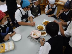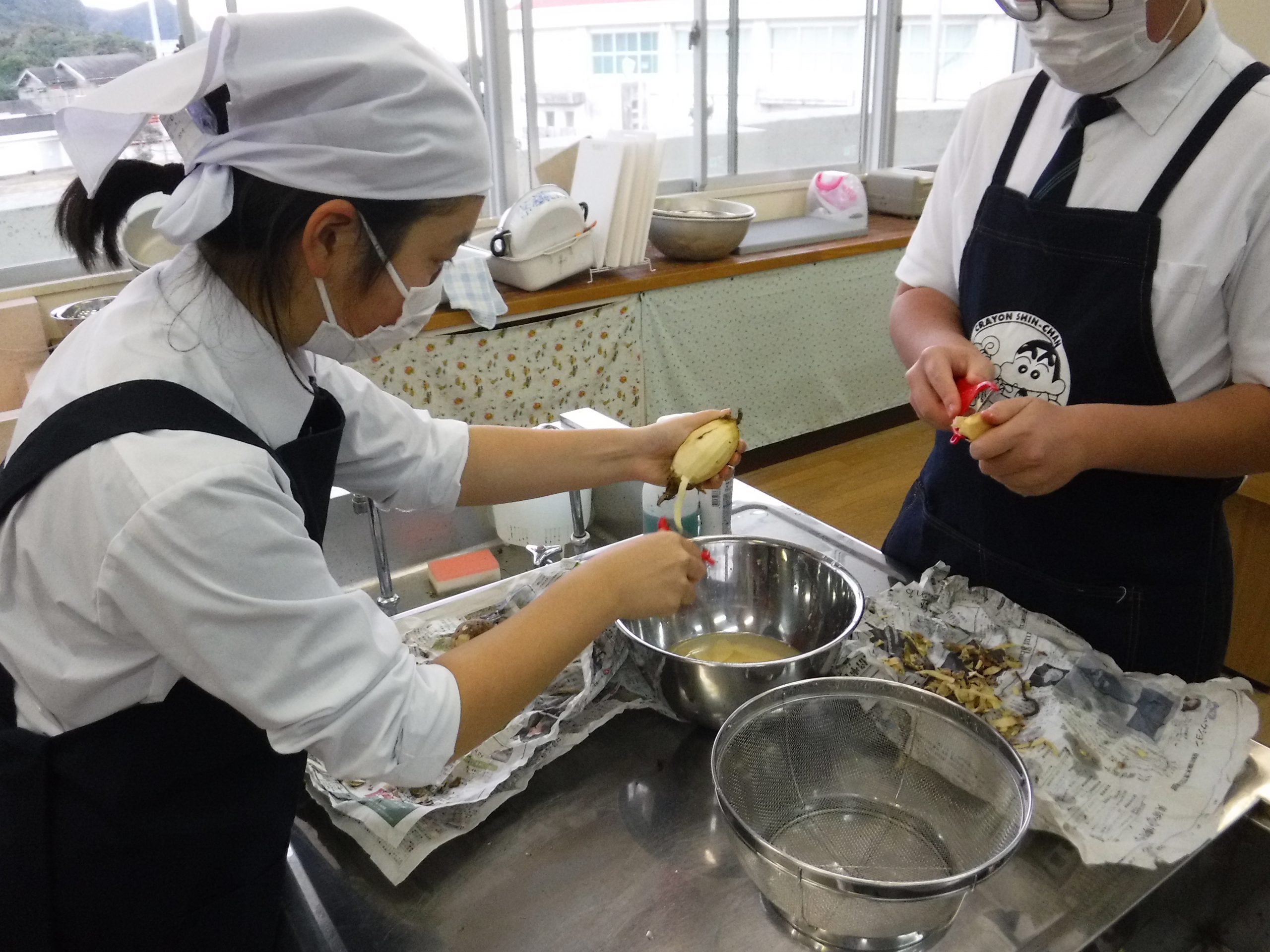 ピーラーでのけがやコンロを扱う時のやけどに気を付けながら試作品が完成しました。ピーラーで剥いたかんもの厚さや揚げ加減、塩加減など食べ比べをしました。本番も予定通りできるといいですね。
