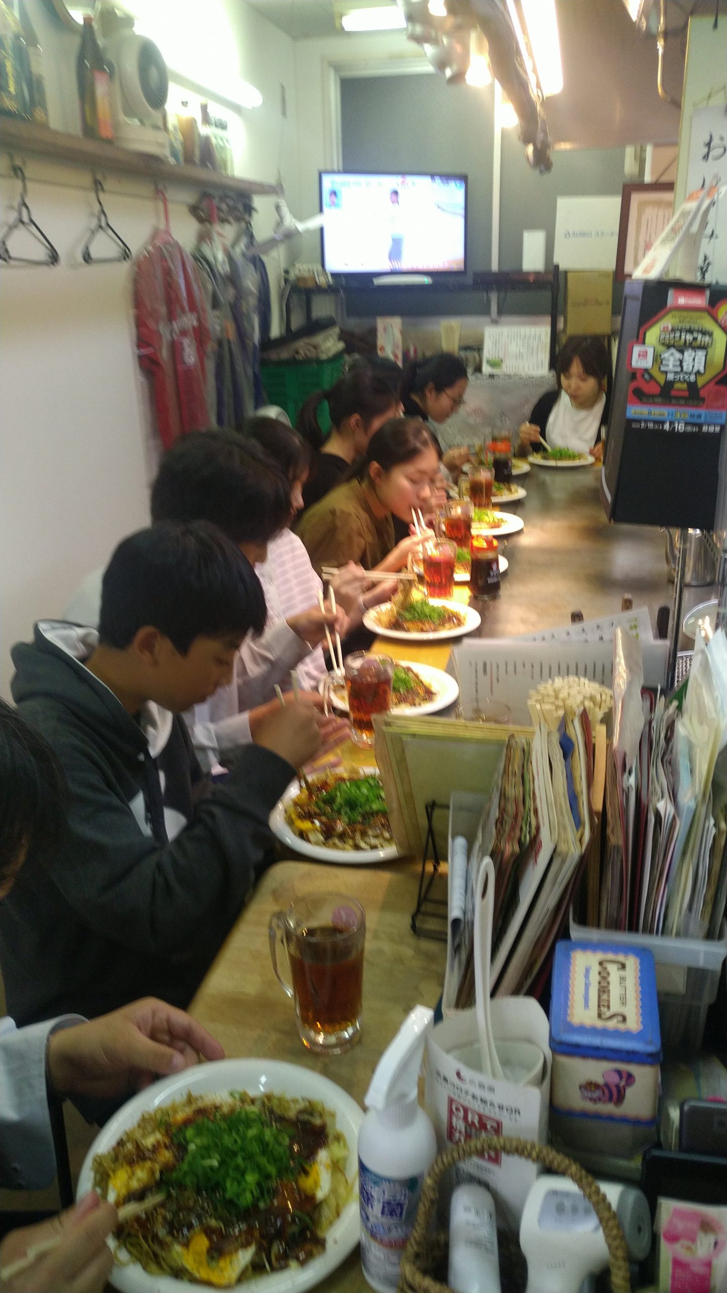 修学旅行153年生2023.04.272日目の宿は「広島の宿 相生」さんにお世話になります。原爆ドームの目の前でとても落ち着いた雰囲気です。夕飯はお好み焼きを食べに行きました。すごいボリュームでしたが、みんなペロリと平らげました。